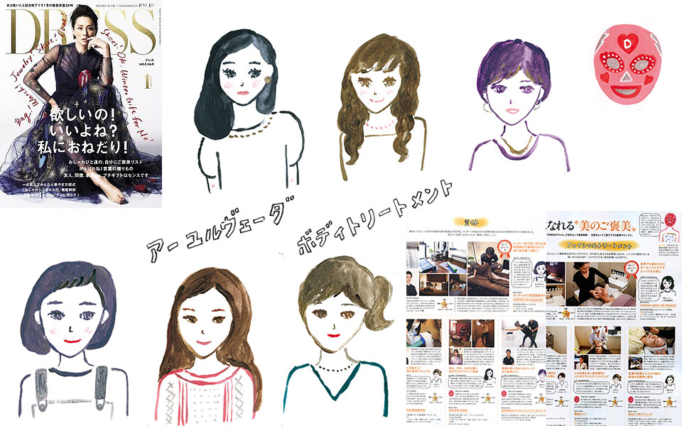 『DRESS』1月号 数時間で幸せになれる“美のご褒美”特集ページにてポートレート15名、文字まわり他沢山描きました!
