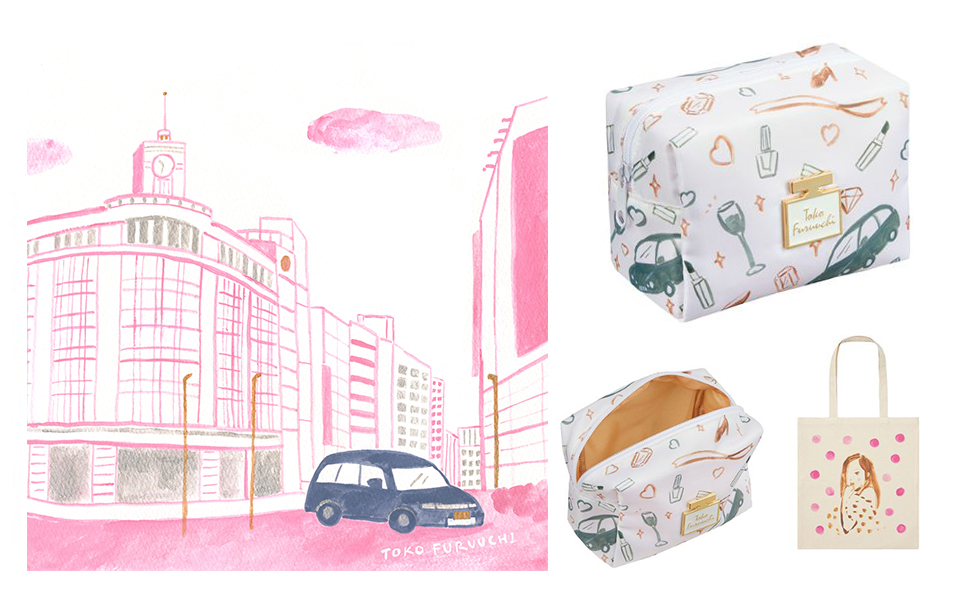 ハンカチ、ポーチ、トートバッグ イラストレーション